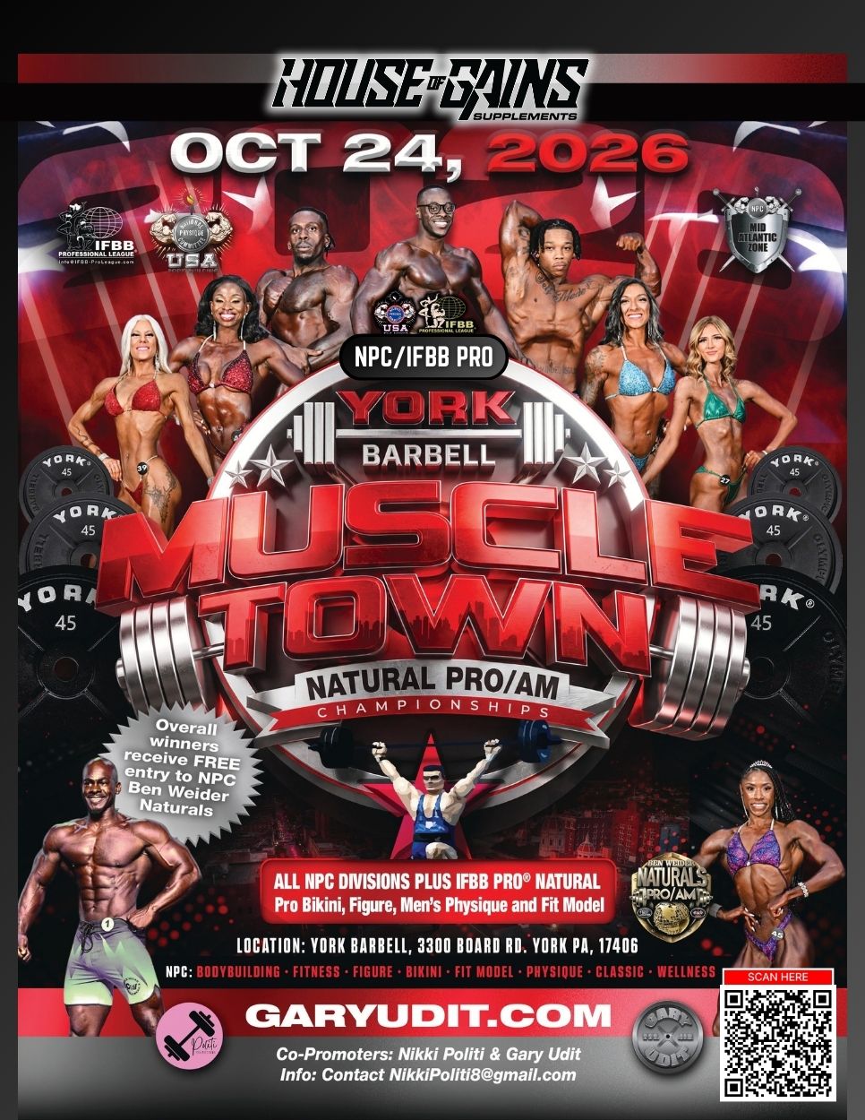 York Barbell presents NPC Muscle Town Natural Championships and the IFBB Pro® Natural Pro Bikini, Figure, Men’s Physique and Fit Model